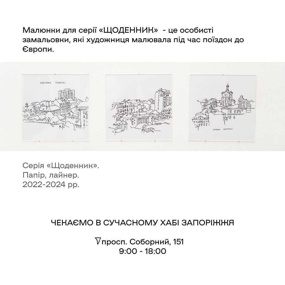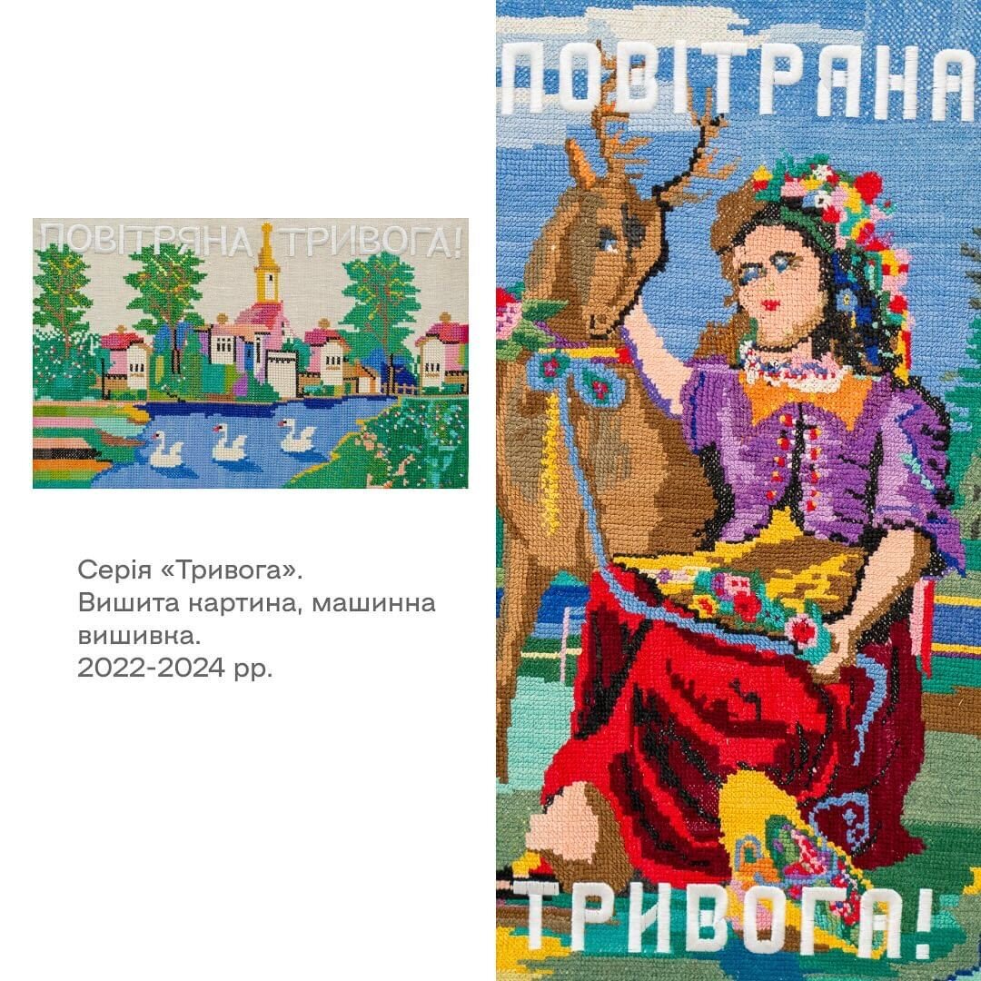 У каруселі розкриваємо трохи деталей про проєкти, створенні мисткинею на початку повномасштабного вторгнення. Кожен з вас має можливість через призму робіт художниці побачити мистецтво під час війни та його призначення.