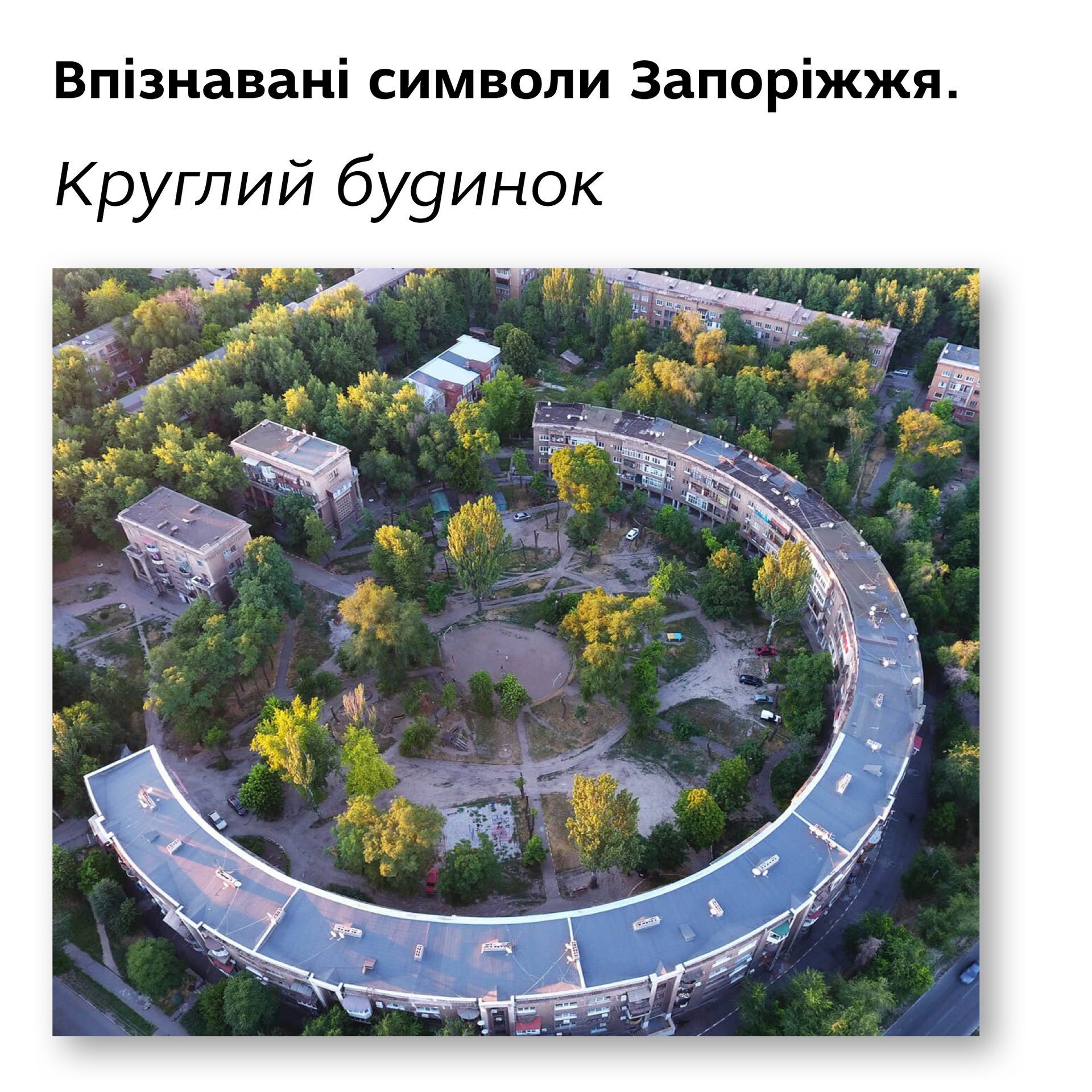 ▪ Круглий будинок було зведено в 1938 році за проектом архітектора Віталія Лаврова. Тривалий час будинок вважався найбільшим за розміром у місті.