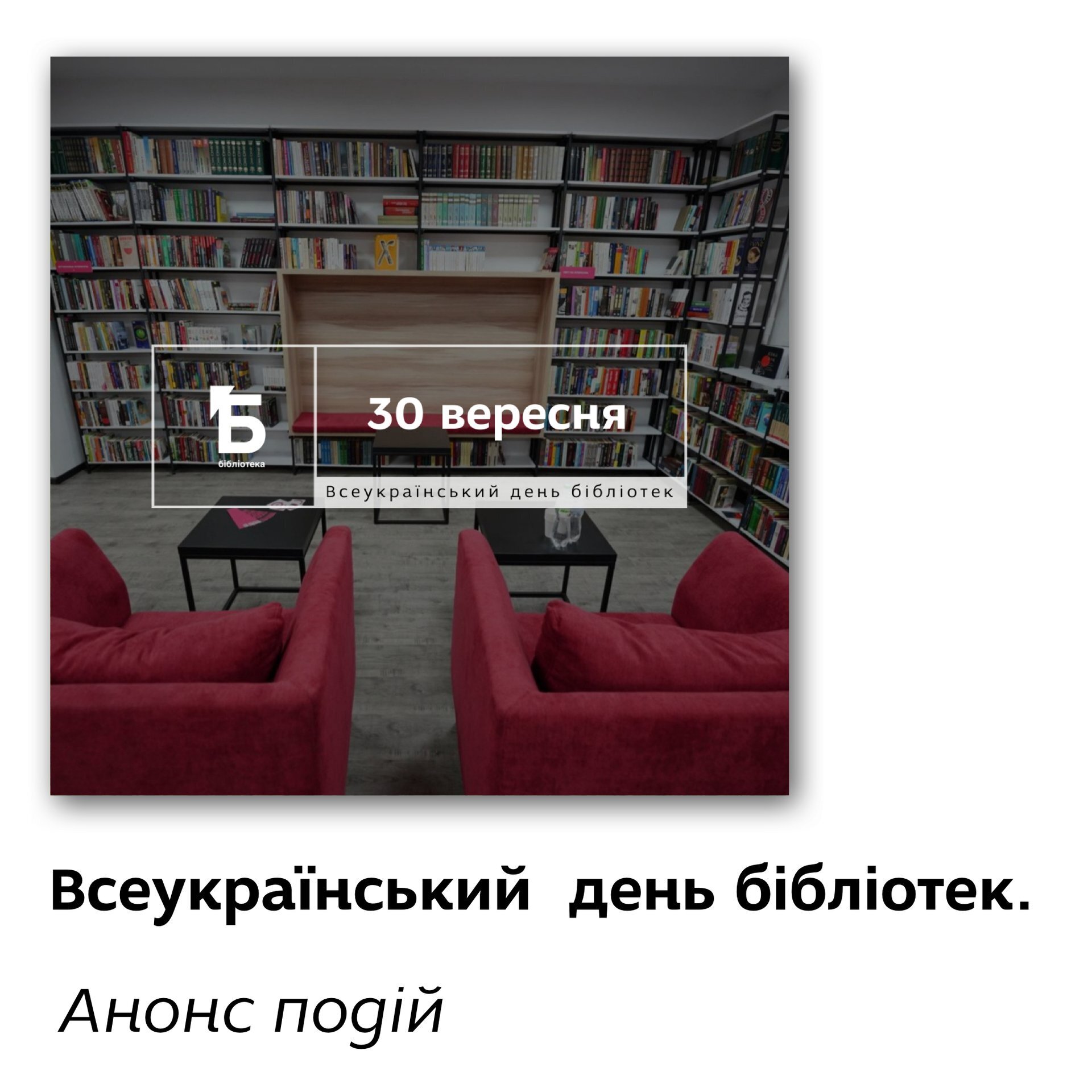 Вже зовсім скоро, 30 вересня, будемо святкувати Всеукраїнський день бібліотек. Підготували багато цікавого для своїх читачів. Приєднуйтесь, буде книжково!