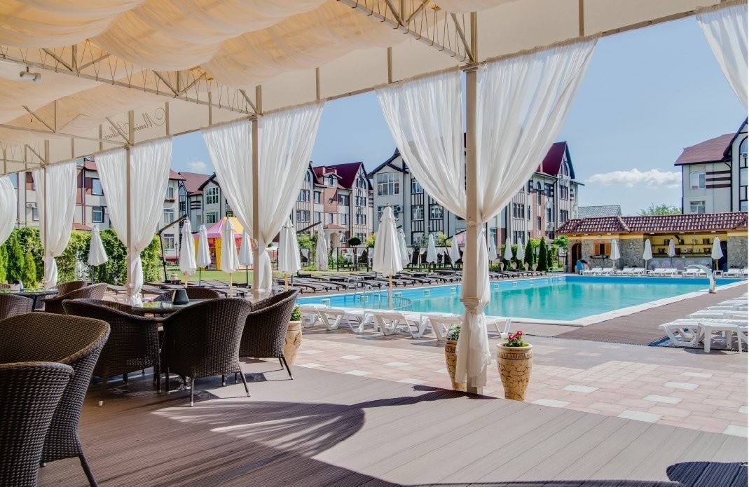 віллами, дитячим парком розваг і декількома басейнами на вибір. Одеська кухня, яхт-клуб та будиночки з сауною для ідеальних вихідних у непогоду або міжсезоння. Чи не гарний привід втекти в Одессу ?