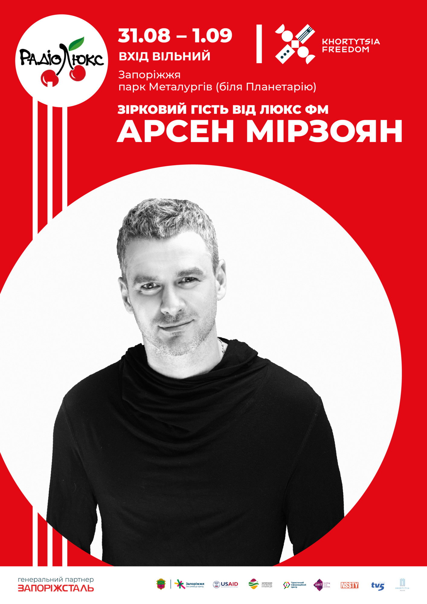 Сталевий голос України, наш земляк, виконавець та автор своїх пісень - Арсен Мірзоян на Khortytsia Freedom - 2019. Всі його пісні стають хітами, кліпи набирають мільйони переглядів на YouTube, а концерти збирають аншлаги.