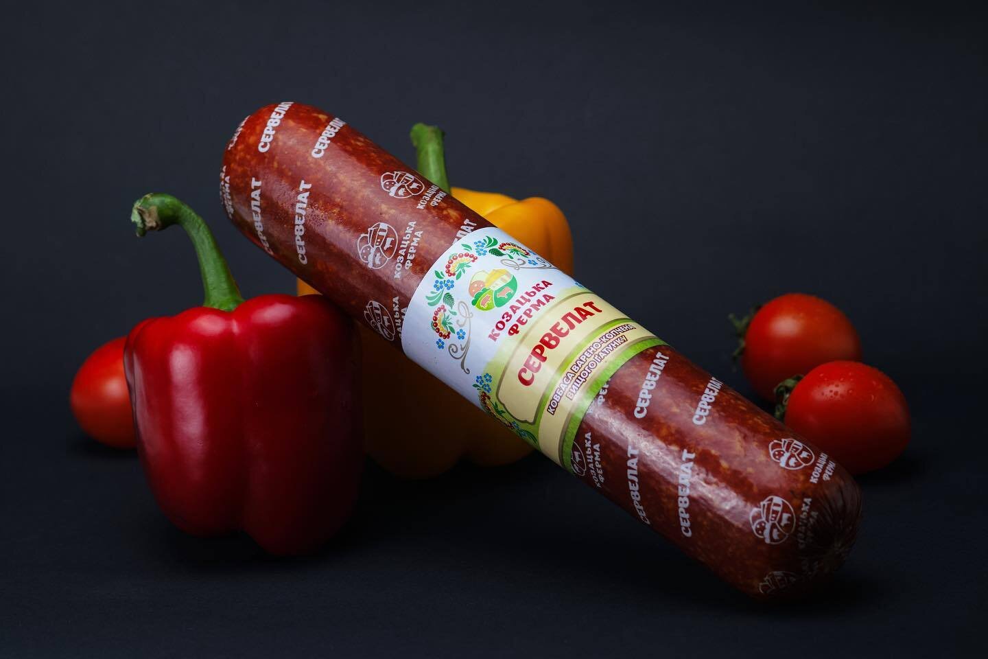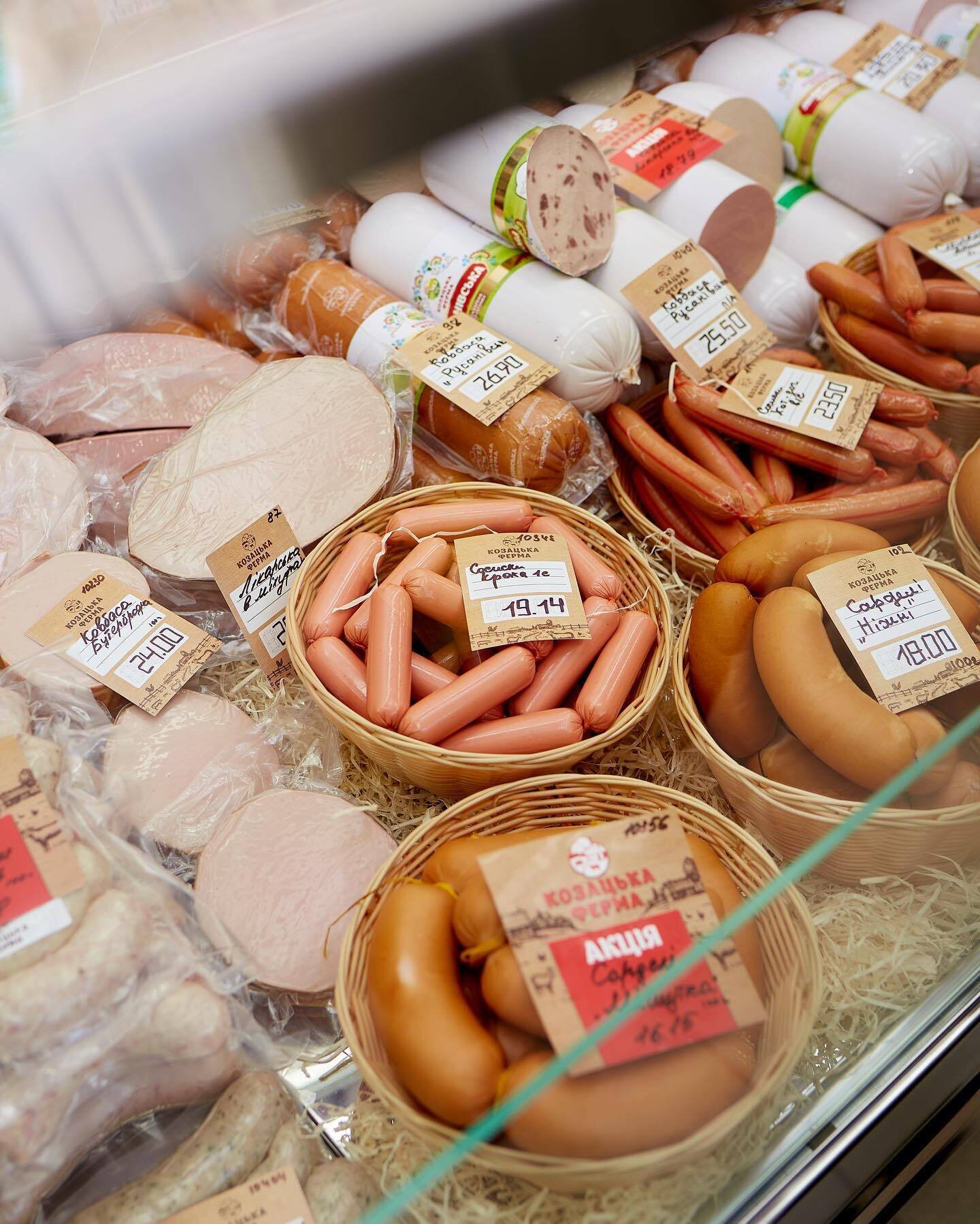 Компанія "Козацька Ферма" займається виробництвом ковбас, сосисок, м'ясних виробів з м'яса свинини і яловичини з застосуванням натуральних спецій, молока і молочних продуктів без консервантів і без додавання сухих сумішей.